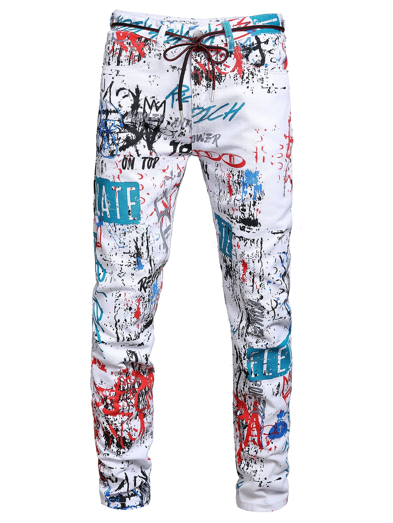 Romwe Guys Graffiti Graphic Skinny Jeans 70112w16916 Walmart Com
