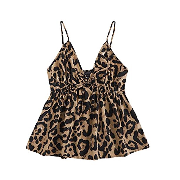 Romwe Women S Plus Size Leopard Print Tie Front V Neck Ruffle Peplum Cami Tank Tops Camisole Coffee Brown 2xl Walmart Com